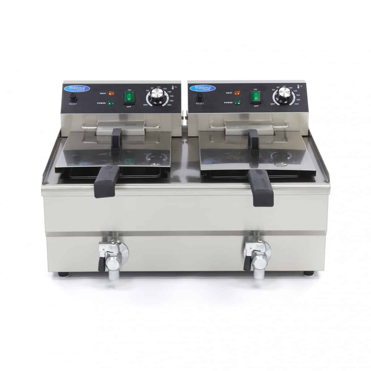 Když budete smažit v této dvojité fritéze, zákazníci nebudou muset čekat na svou objednávku. Najednou lze usmažit až 2,2 kg hranolek s použitím obou košů. Nebo 1,1 kg hranolek v jedné fritéze a další občerstvení v druhé. Díky vestavěným vypouštěcím kohoutům je také výměna oleje uživatelsky velmi přívětivá. Pod každý vypouštěcí kohout umístěte misku a kohouty otevřete. Obě fritézy mají odnímatelnou mřížku, která zabraňuje ucpání odtokových otvorů drobky, a když všechen olej vyteče do nádob, můžete kohouty opět zavřít a starý olej zlikvidovat.