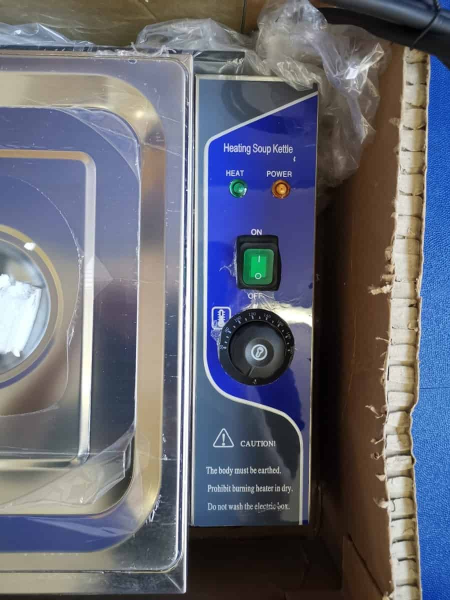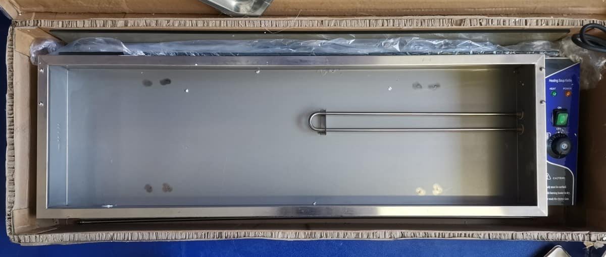 Sklo zakrývá čelní a vrchní stranu vodní lázně, z boků pak nerezové, plné úchyty.